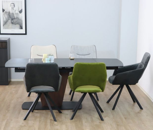 シンプルながらも高級感漂うこのテーブルはモダンな空間にピッタリのダイニングテーブルです。セラミック天板とスチール脚の組み合わせが耐久性と美しさを両立させています。